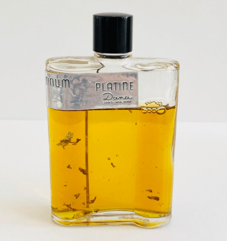 The large splash bottle on the left is Platino / Platinum / Platine by Dana, a fragrance launched in 1934.
