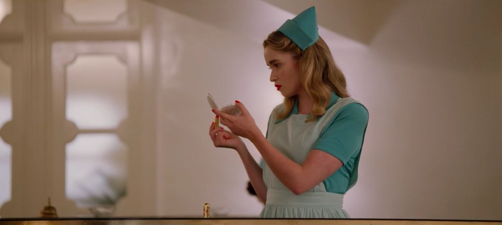 Mildred (Sarah Paulson) is about to meet the private detective Charles Wainwright in her room again. On her dressing table we see an old acquaintance and a new bottle.