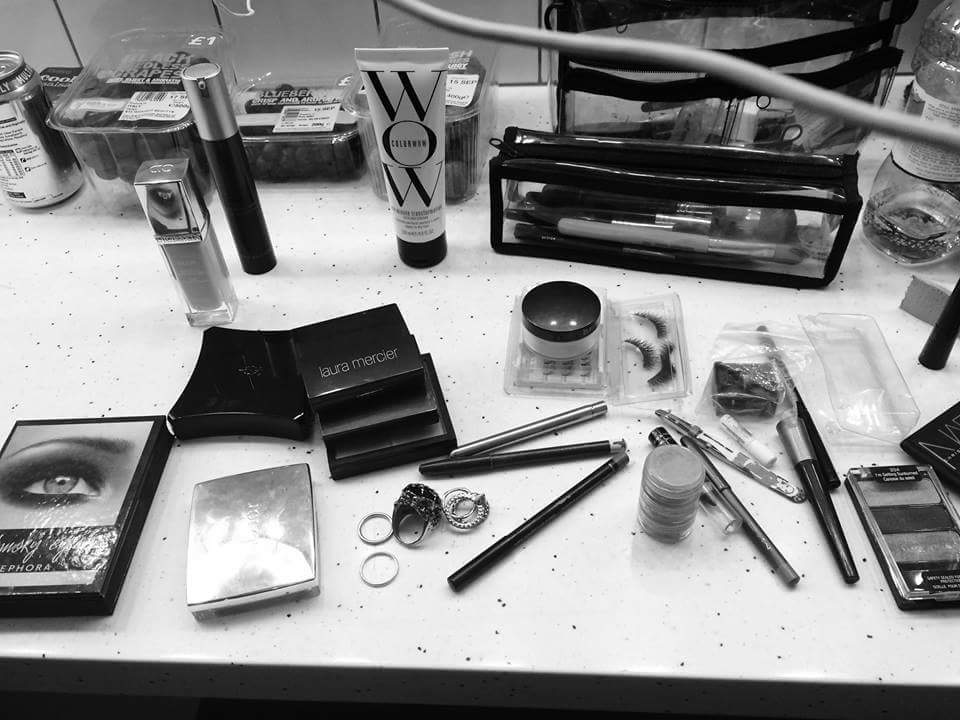 I love dressing room portraits so much, especially when their protagonists are people I admire. This is certainly the case of Shirley Manson, frontwoman of Garbage. She took this selfie before performing at the Kaaboo Festival in San Diego last Semptember. Let’s see what’s on the table (from left to right).