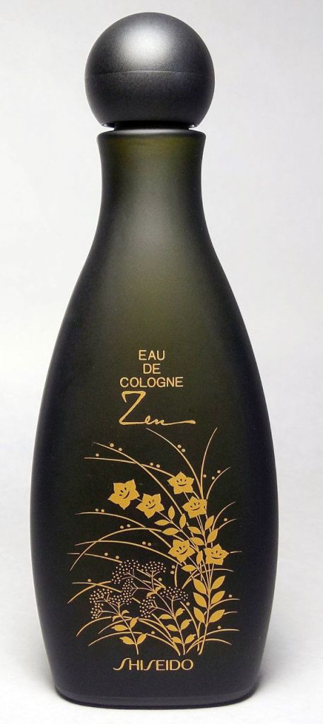 The second fragrance, in the small black bottle, is much less mainstream. It’s the original version of Shiseido Zen eau de cologne, created by Josephine Catapano and first launched in 1964. The bottle, beautifully decorated by gold flowers, has an elegant shape, characteristic of Shiseido bottles from the 1960s/1990s.