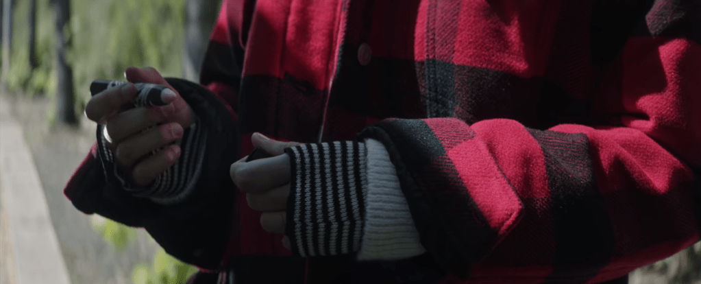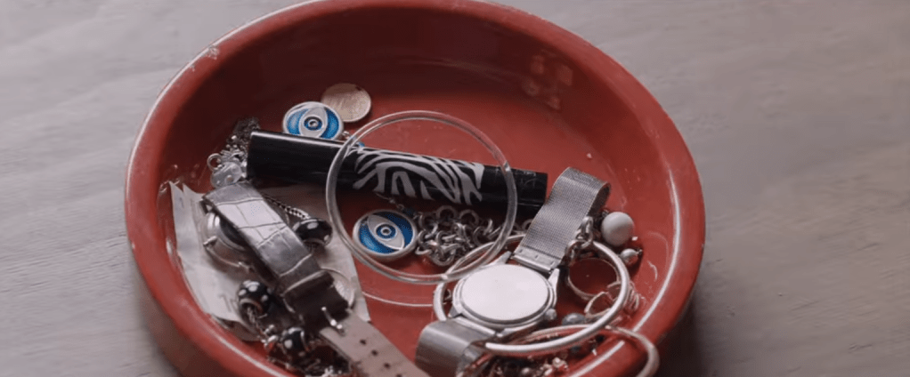 In the middle of the table there are several Phyto-Lip Twist Mat lip colours in pencil form. Zoe (Marta Nieto) uses one of them later in the film.