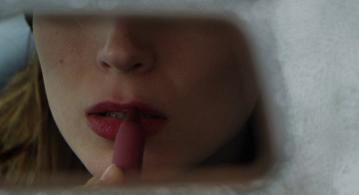Kathryn (Cate Blanchett) is getting dressed for dinner at home. She’s putting on a pair of earrings (a gift from her husband) while sitting at her dressing table, where we can see different make-up products and fragrance bottles.