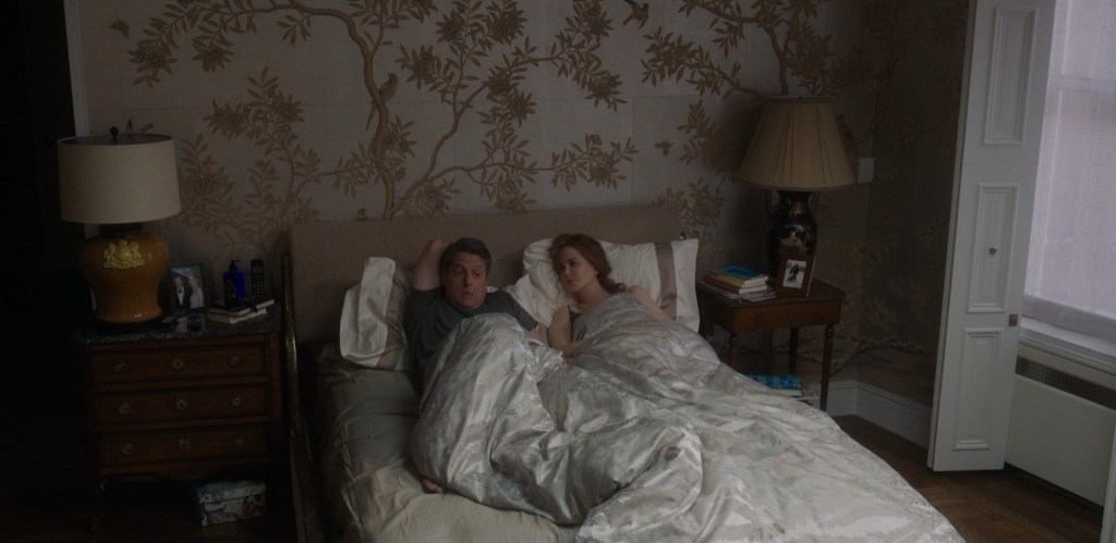Henry (Noah Jupe) is brushing his teeth. Some toiletries and fragrances can be seen in the elegant marble bathroom where he’s standing.