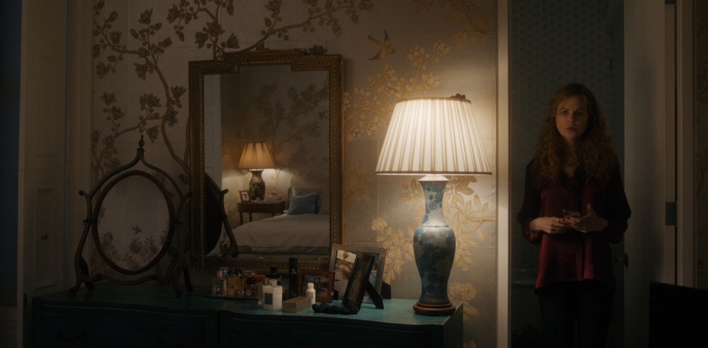 Moving to the bath tub area opposite the boy, we can see several bottles on a round table. On the left side of the table there’s a bottle of Giorgio Armani Sì, a chypre fragrance by Christine Nagel launched in 2013.