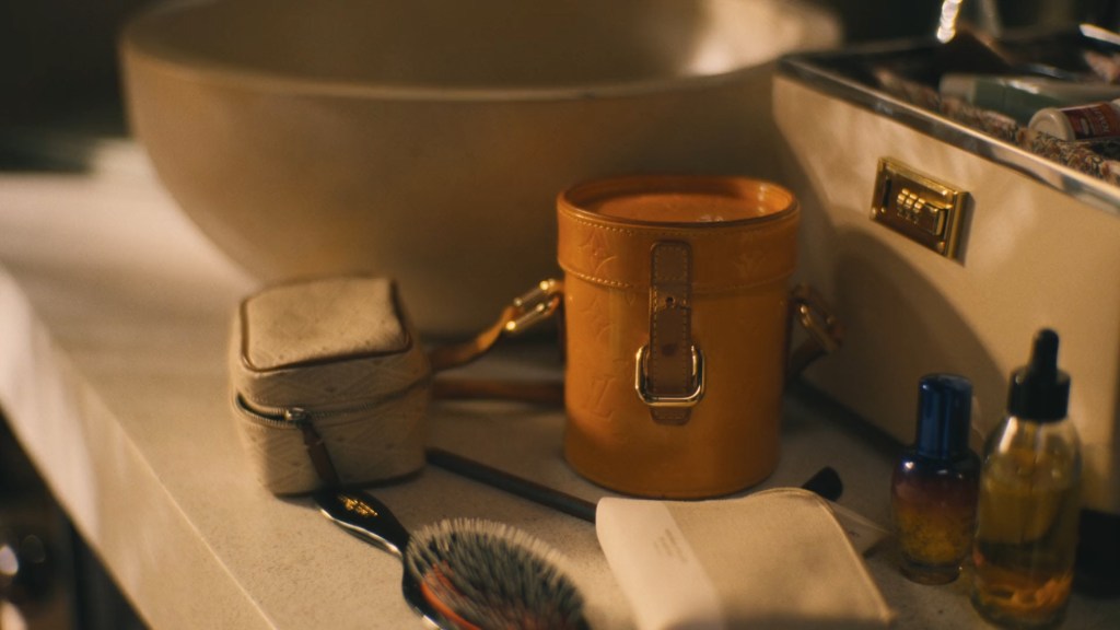 Laurie (Carrie Coon) is lounging by the White Lotus resort pool with her friends. On the wooden table next to her there’s Nivea Sun Protect & Dry Touch refreshing mist.