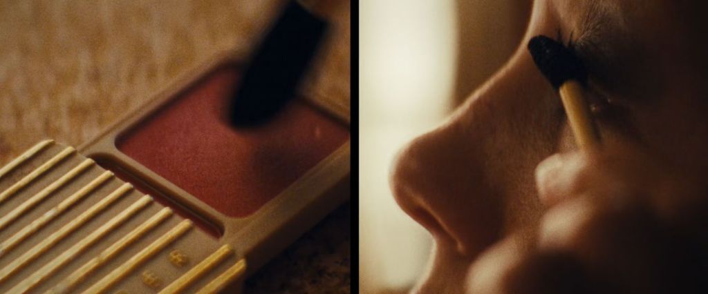 Maxxxine (Mia Goth) is getting ready to shoot a porn film. There are lots of cosmetics and skincare on her dressing table.