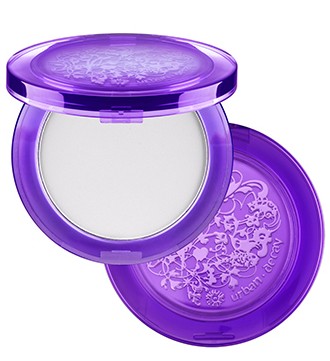 Urban Decay Naked 2 eye-shadow palette and De-Slick mattifying powder compact, Essie lavender and coral nail polishes on the Sworn sisters’ dressing table.