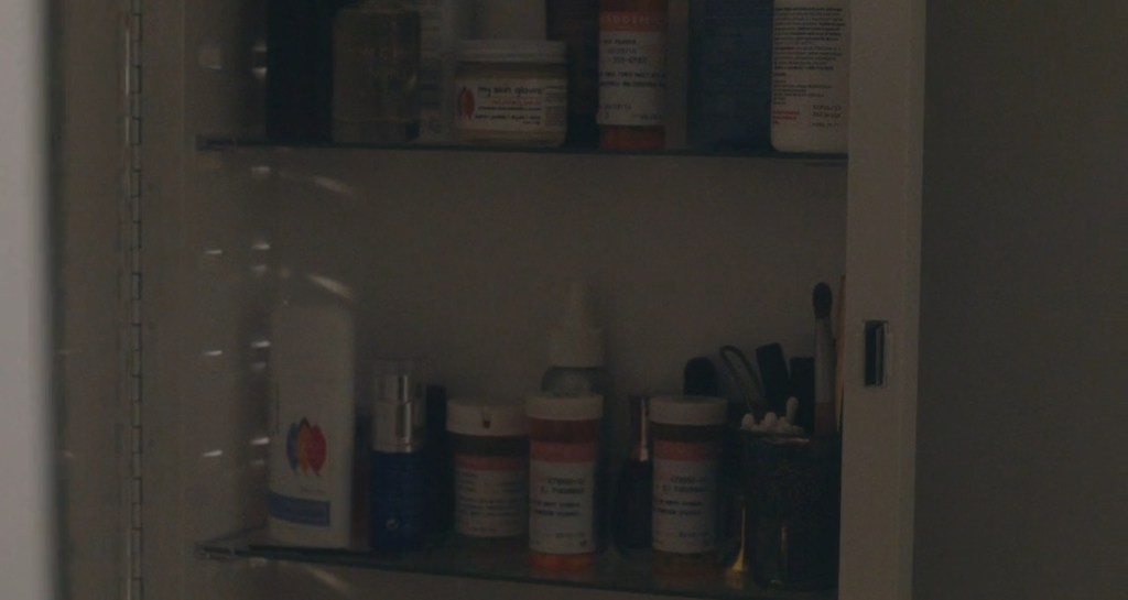 There are a box of Dove soap and a Cutex nail polish remover in Nora’s bathroom cabinet.